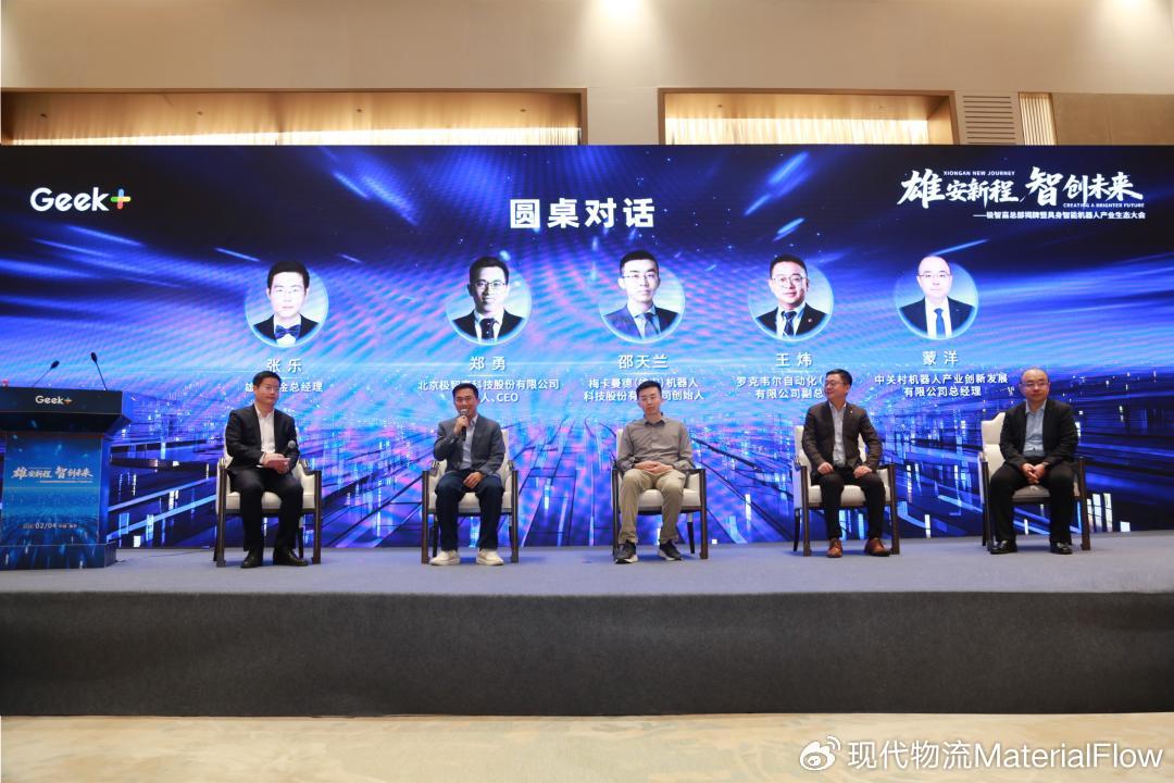 在圆桌对话环节,在中国雄安集团基金管理有限公司总经理张乐的主持下,企业和机构代表展开深入交流,共同探讨在雄安新区这一国家级平台上,如何通过技术融合、场景共创与资源整合,加速具身智能机器人在各行业的规模化落地与应用创新。