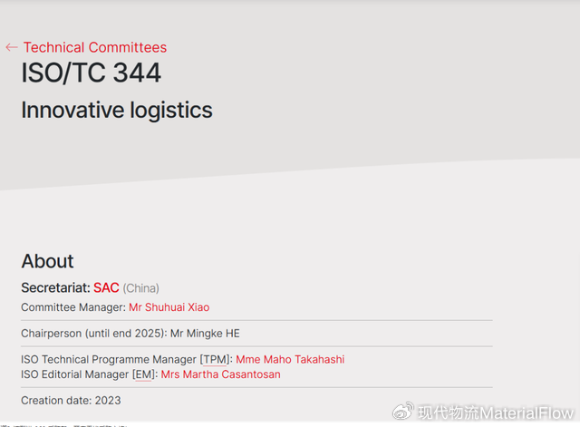 ISO/TC 344:面向创新物流的国际标准化平台
