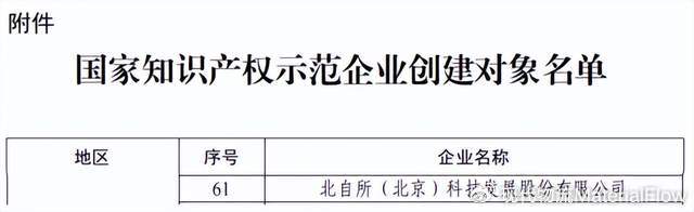 近日,国家知识产权局发布了关于确定2025—2027年国家知识产权强国建设示范创建对象的通知,经企业申报,省(自治区、直辖市)知识产权局推荐、资料审核、专家评审、社会公示等层层审查,北自科技成功入选“国家知识产权示范企业”创建对象名单。