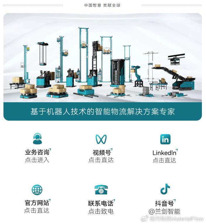 兰剑智能(股票代码:688557)是全球领先的全流程智慧物流系统解决方案提供商和全系列物流机器人智能制造商。自1993年成立以来,始终专注于仓储、分拣、搬运、输送、包装、装卸车、拆码垛等自动化物流设备和信息系统的研发,以此为核心为客户打造定制化端到端的智能物流系统,帮助客户建立优质、高效、低成本的现代物流体系和智能制造体系。