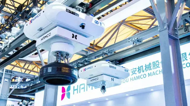 除了精密制造,智能轻载双轨穿梭车系统还可以满足食品饮料等行业的包材搬运需求。由于新一代智能轻载双轨穿梭车系统具备了强大的载具识别能力与高度适应性,在CeMAT ASIA 2025现场,鸿安通过对轮胎和杯子的抓取、搬运,优雅且流畅地展示了其在物料搬运作业中的三维空间作业能力与智能调度系统,也展现了强大的适应能力。刘经理表示,鸿安为空中穿梭系统配备了机械手、夹爪、吊篮、夹抱等不同形式的载具和抓手,也可以根据客户的需求定制载具。